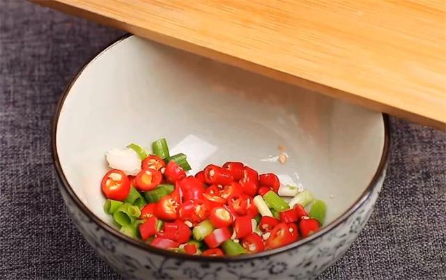 2.接着我们再切一点葱花和小米辣,切好装入碗中。
