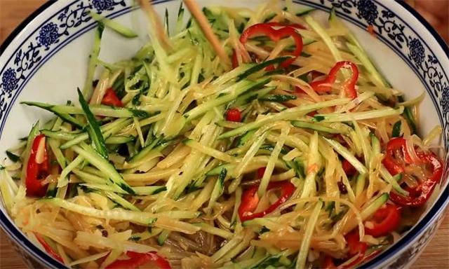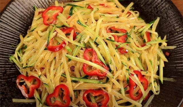 土豆不要炒着吃,加一根黄瓜,大厨教你酒店吃法,比肉还香的滋味。平时没胃口吃饭的时候,我们可以准备一些下饭菜,这会儿很多家庭的餐桌上相信都会拿酸辣土豆丝当做下饭菜吧,因为它吃起来酸辣可口,而且土豆丝也是大家平时都非常爱吃的食材,吃起来绝对特别的下饭,可是如果每天都吃酸辣土豆丝,那就让人感觉非常无奈了,所以有土豆也不是这么个吃法啊,家里要是有土豆的就别再炒着吃了,加上一根黄瓜,这样做方法简单而且成品好吃,比红烧肉还下饭。