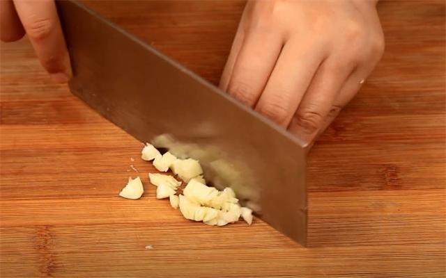 2.准备几个大蒜,把大蒜拍一下切成蒜末,再切一点葱花。