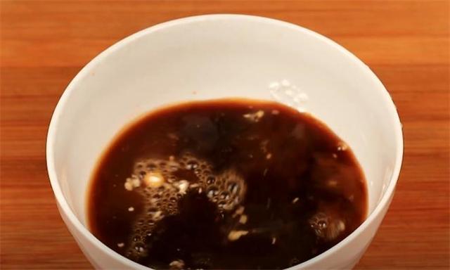 5.碗里加入一勺料酒,加入两勺生抽,三勺陈醋,三勺的白砂糖,少半勺的食盐,加入一勺的淀粉,大概五勺的清水,用勺子给它搅拌均匀,料汁搅匀之后待用。
