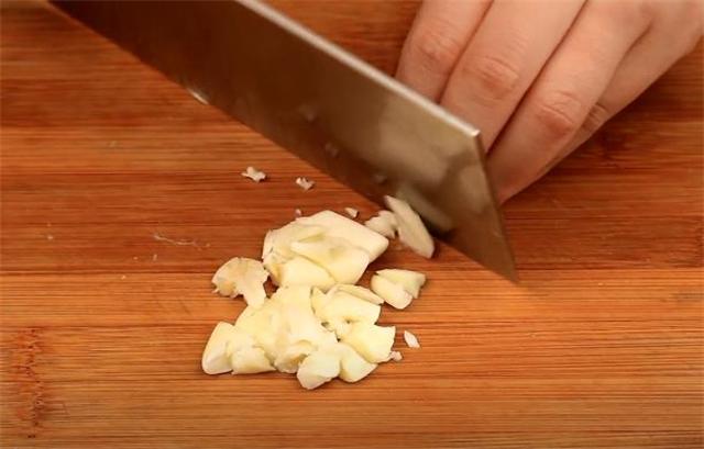 3.准备两个大蒜拍一下,再切成蒜末。