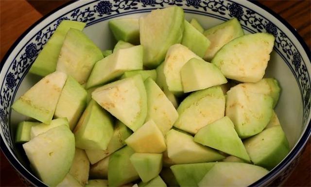 1.先把茄子去皮,把一个茄子分成四份,用刀切成小块,切好放入盆中。