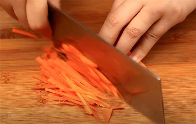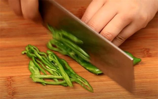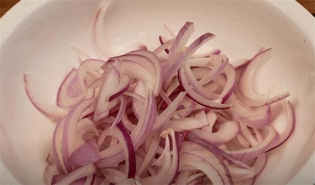 2.泡好之后我们把洋葱切成细丝,洋葱丝切好之后放入盆中。