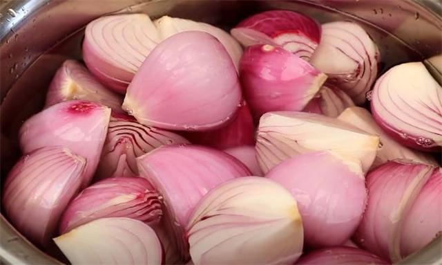 1.先把洋葱一分为四份,准备一盆水,然后把洋葱放到水里面浸泡一下,浸泡10分钟左右,这样在切的时候不会辣眼睛。
