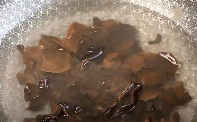 3.锅里水开后把提前泡发的木耳下锅焯水,焯水2分钟后出锅。