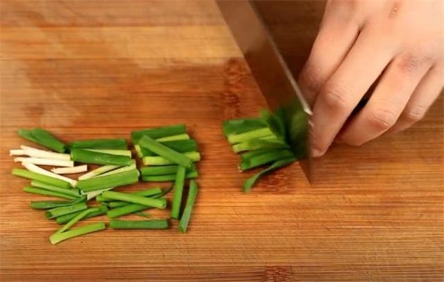 2.准备几根小葱切成段,几个干辣椒切段,再准备几个大蒜拍一下切成蒜末。