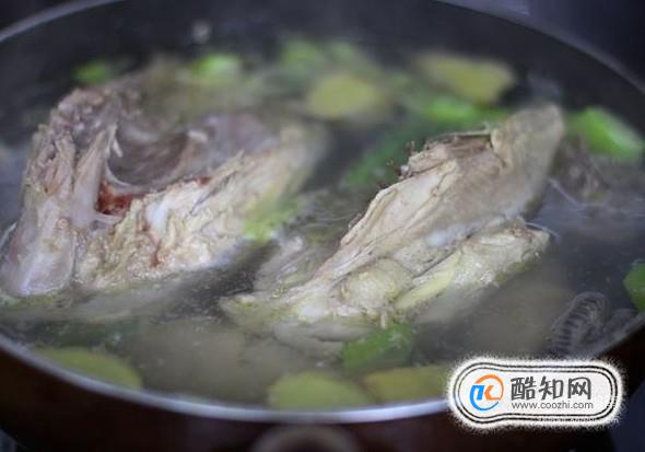 首先我们先把处理好的土鸡用清水在洗一遍,把多余的血水洗静,然后把土鸡剁成一块一块的,然后把土鸡放入锅中煮去浮沫,放入姜片去腥,然后捞出备用。