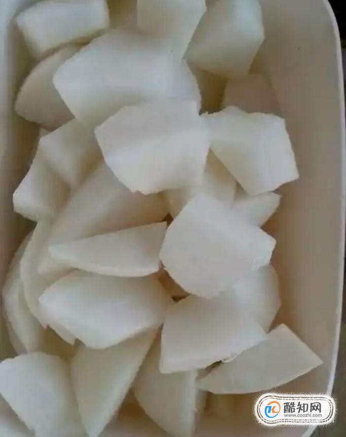 将白萝卜切成块,备用。就好。