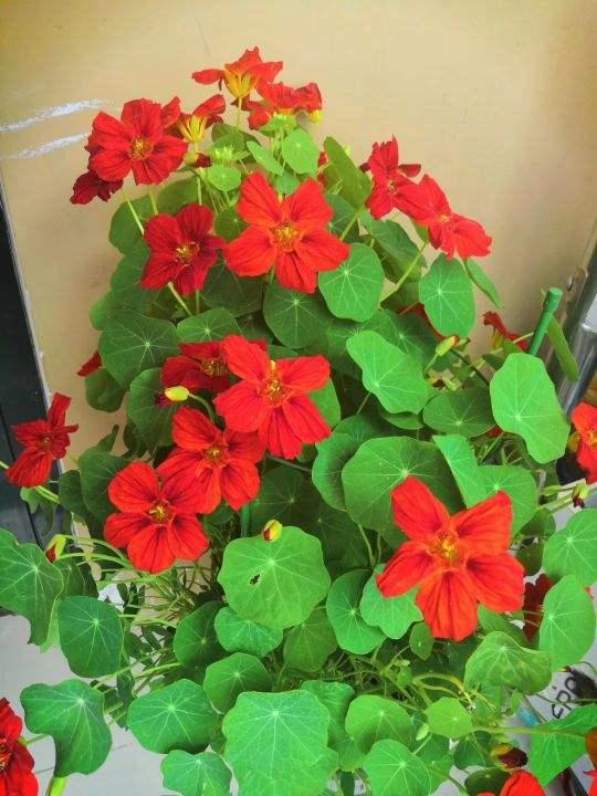 家里要是想打造一个花墙的话,用旱金莲的效果也是非常不错的,旱金莲在还没开花的时候,叶子的观赏价值也非常高,看着有点像是铜钱草,也有点像山乌龟,还没开花的时候只是观赏叶子也是非常合适的。今天咱们就来一块看看到了春天咱们应该如何养护旱金莲~
