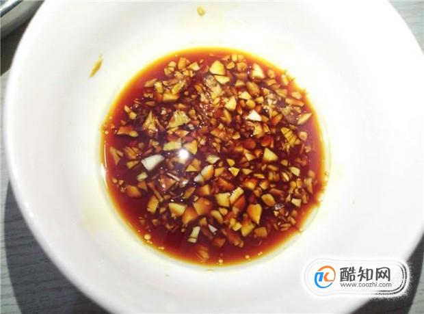 最后,准备一下酱料,姜蒜剁碎,加入适量的花生油、酱油、盐,调制沾筒骨吃的酱料。