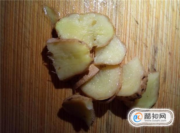 姜切成薄片,锅里放入适量的水,放入姜片,煮开。
