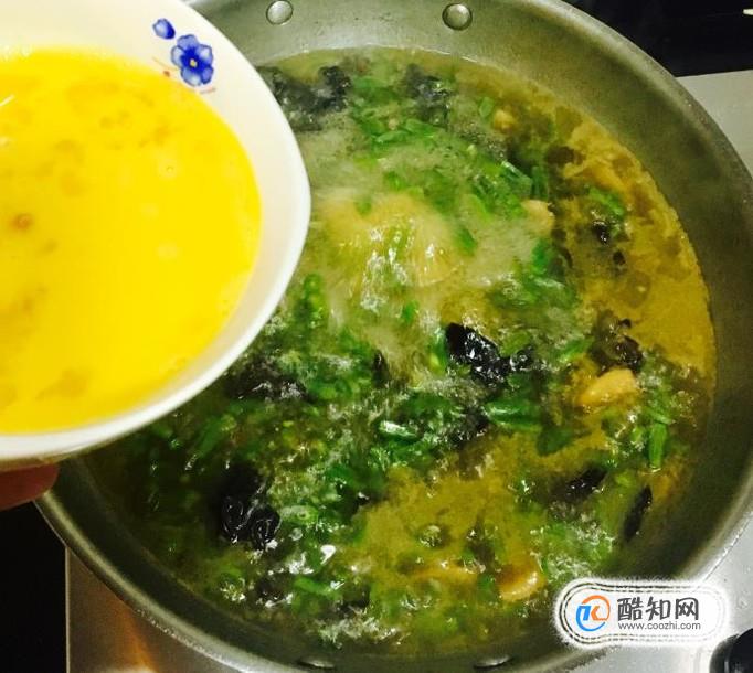 煮至豆角断生后均匀的淋入鸡蛋液,用汤勺轻轻推散使蛋液成熟关火,撒入韭菜段再次搅拌均匀即可