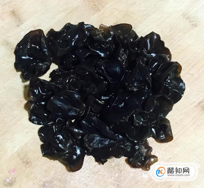 取适量的木耳放入容器中用凉水泡发5个小时左右,择洗干净根部的杂质后撕成小朵