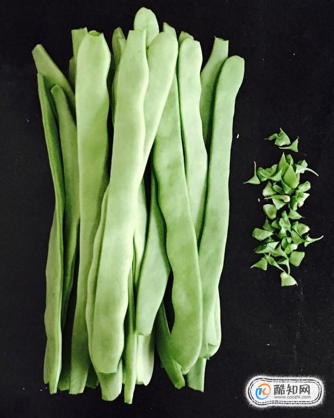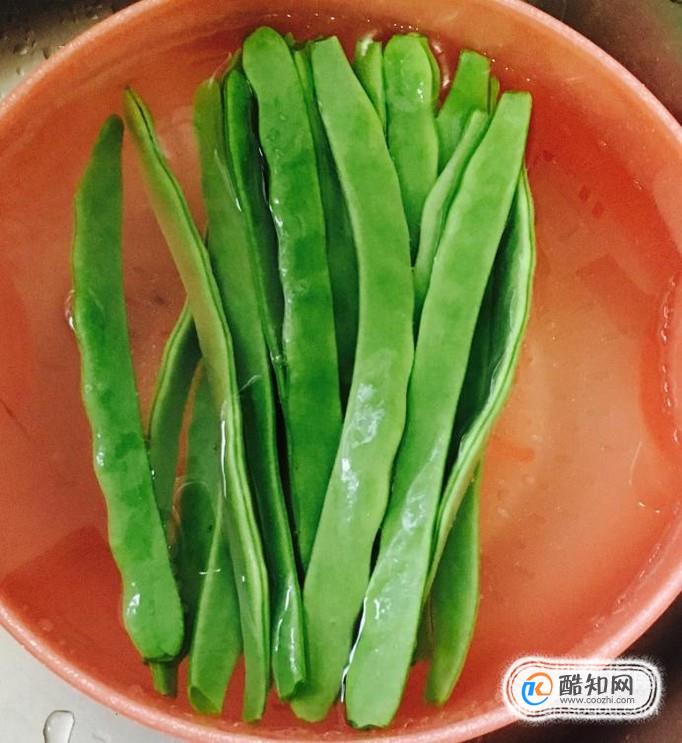 豆角择去两头清洗干净,放入容器中用清水浸泡一下,然后控干水分切成小段