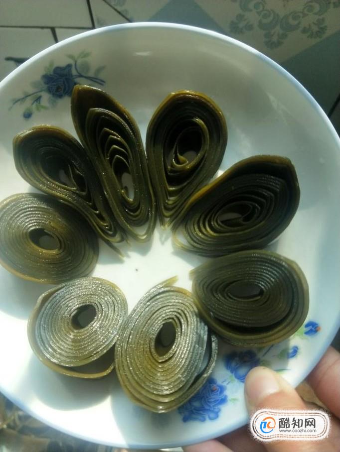 像下图一样,切三角,但注意不要切断,以免里层的海带太短