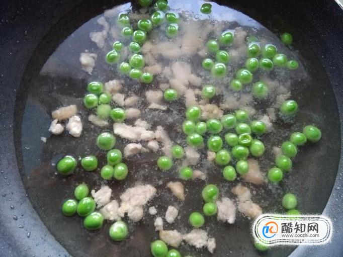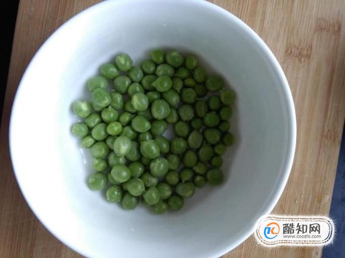 将买来的豌豆剥壳,豆米洗干净,捞出沥干水分(如果豌豆的水分没有沥干,炒的时候很容易迸油)