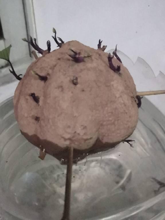 我们把发芽的红薯洗干净后,下半身浸水,放在半阴的地方,大概过了一周左右,它就会长出新的芽叶。长出芽叶的红薯这时就需要进一步的深养。我们可以把它放在深一点的盆里,让红薯的根能够得到固定。