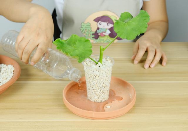 取几个平时喝水的一次性纸杯,将杯底挖几个小孔,并装上一些沙石。将天竺葵的枝条插入到沙子中。将扦插好的天竺葵放到明亮的地方,每天适当地浇水保持沙子的湿润,不出几周扦插的天竺葵就能活啦。