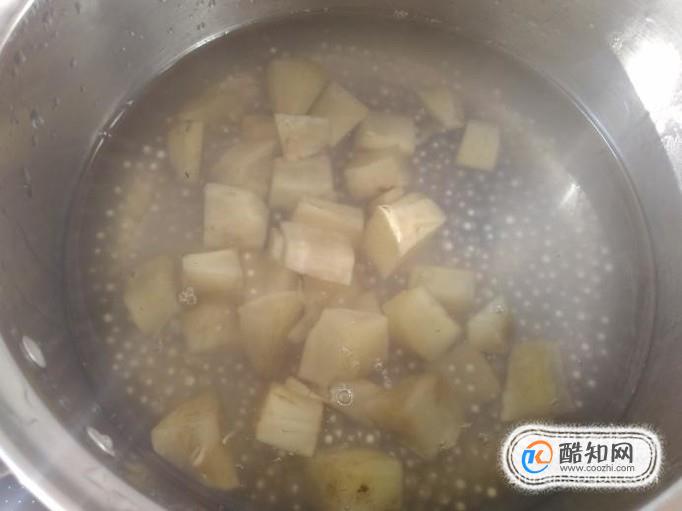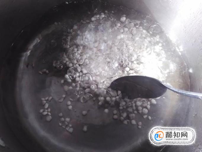 盖上盖子煮3分钟,熄火停10分钟左右再开火,反复这样,煮到西米差不多全部变成透明状。