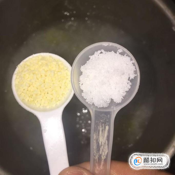然后晚锅中加入一勺的盐巴和一勺的味精。