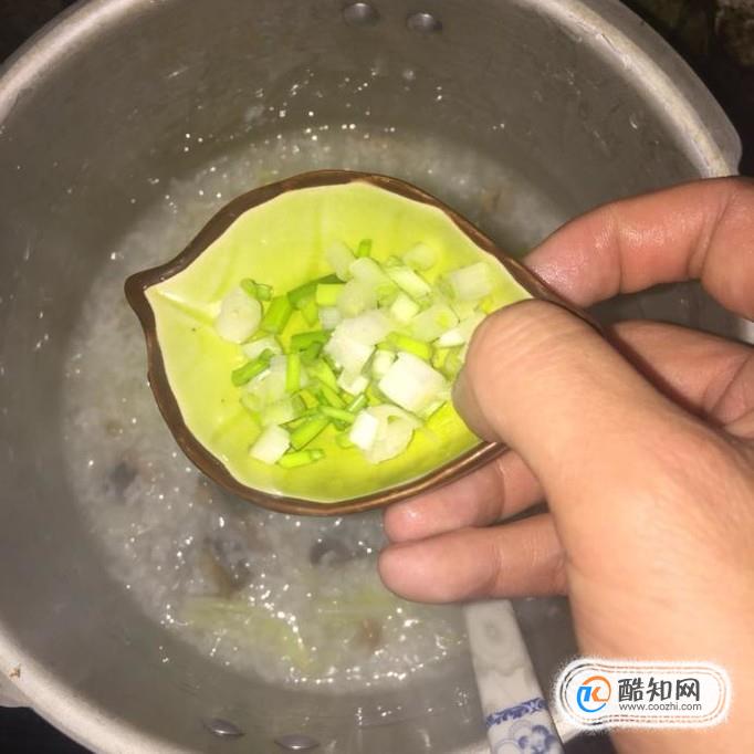 接着把香葱切成葱花,倒进锅中,小煮片刻就可以了。