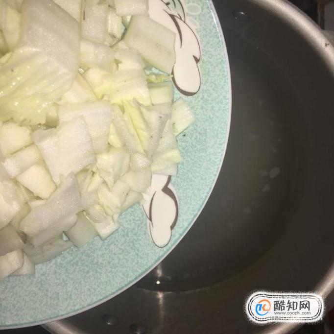 然后把大白菜洗净杆叶分离,白菜干切成丁,打开高压锅,把白菜干倒进去煮五分钟。
