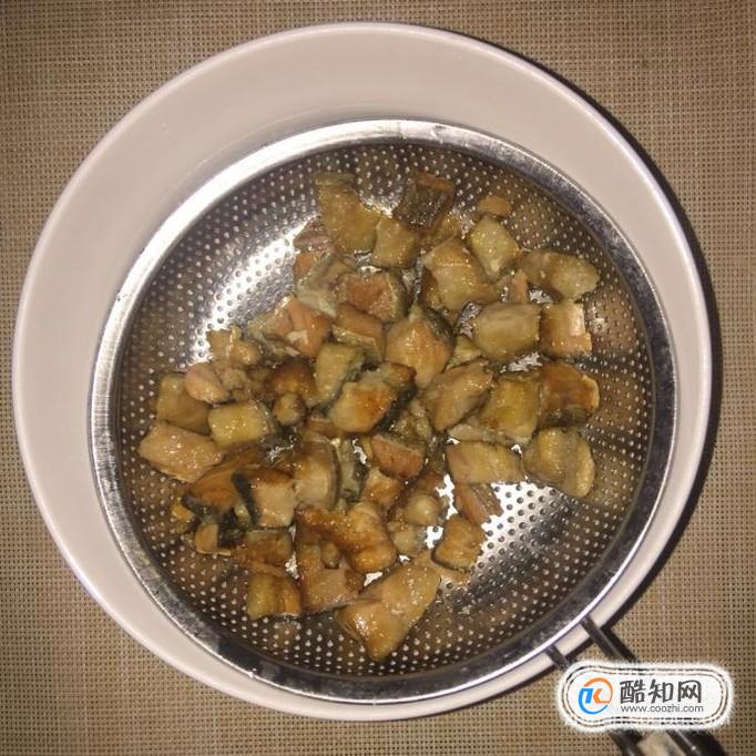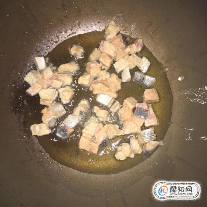 接着把鳕鱼切成小块并用适量的地瓜粉裹一下;然后锅中放入适量的食用油,待油冒烟,倒入鳕鱼块炸至两面金黄,装盘沥油。