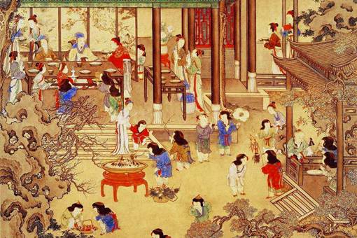 3.古人过年玩什么古代过年,好像是一场马拉松狂欢,从小年(腊月二十三)一直嗨到正月十五元宵节。 小年是为大年做准备的,主题是祭灶神、大扫除、买年货。每个朝代的灶神口味不同,羊肉、鱼肉、猪肉、酒糟、麦芽糖、豆子、糕点都曾被灶神享受过。 祭灶神是男人的活儿,大扫除是女人主管的事儿。《红楼梦》里,就是王夫人和王熙凤率领仆人进行年前大扫除。古代没有84消毒液,杀菌消毒全靠盐。尤其是宗祠,必须打扫得干干净净。 大扫除之后,就是女人们最嗨皮的活动—买买买,年货市场简直比双十一还火爆! 衣服、头花、春联、桃符、门神、年画、年酒、彩绸、糖果、炭火盆、扫帚、日历……只要跟过年沾边儿的全热销,快递小哥儿集体累到虚脱。 除夕前三五天,大家开始在同事、亲戚、朋友、邻居之间送年礼。普通人家就送点儿吃的,官宦之家的年礼五花八门。《红楼梦》里,乌庄头给贾家送的年礼价值2500两银子,相当于50万元人民币。 年礼往往也是职场的风向标:我看好你,年礼加三成;我认定你会衰,年礼减两成。 北宋大文豪王安石有一首诗是写过年的:“爆竹声中一岁除,春风送暖入屠苏。千门万户曈曈日,总把新桃换旧符。” 挂桃符、贴门神,是为了驱邪避鬼;贴春联,是为了迎春纳福。屠苏酒据说能够预防瘟疫,酒里居然有花椒,味道让人刻骨铭心。 南宋之前的古代人民过年放的不是鞭炮,而是爆竹。先在院子里燃起一个火堆,然后把竹子扔进火堆里,竹子被火烧后会发出“噼里啪啦”的脆响。
