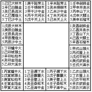 60花甲子对于易经八卦啊算命这些人来说十分的重要了,这个口诀还需要好好看看的,学会了就很简单了,一生受用的,最近很多人想学这个60花甲子口诀背诵技巧还有手掌推算六十甲子图解步奏,下面小编就给大家带来了! ![]() 六十花甲纳音歌甲子乙丑海中金,丙寅丁卯炉中火, 戊辰己巳大林木,庚午辛未路傍土, 壬申癸酉剑锋金。甲戌乙亥山头火, 丙子丁丑涧下水,戊寅己卯城头土, 庚辰辛巳白蜡金,壬午癸未杨柳木。 甲申乙酉泉中水,丙戌丁亥屋上土, 戊子己丑霹雳火,庚寅辛卯松柏木, 壬辰癸巳长流水。甲午乙未砂中金, 丁申丁酉山下火,戊戌己亥平地木, 庚子辛丑壁上土,壬寅癸卯金箔金。 甲辰乙巳覆灯火,丙午丁未天河水, 戊申己酉大驿土,庚戌辛亥钗钏金, 壬子癸丑桑柘木。甲寅乙卯大溪水, 丙辰丁巳沙中土,戊午己未天上火, 庚申辛酉石榴木,壬戌癸亥大海水。 推算纳音五行的方法口诀一:子午银灯架壁钩,辰戌烟满寺钟楼。申寅沙地烧柴湿,便是纳音甲子头。 说明:甲子旬、甲午旬纳音依次为金、火、木、土、金,分别取句中银、灯、架、壁、钩的偏旁;甲辰、甲戌旬纳音依次为火、水、土、金、木,分别取句中烟、满、寺、钟、楼的偏旁,余仿此。 ![]() 推算纳音五行的方法口诀二: 甲乙锦江烟- (金.水.火) 甲子(死)乙丑(墓)海中金、甲寅(病)乙卯(死)大溪水、 甲辰(冠)乙巳(祿)覆燈火、甲午(沐)乙未(冠)沙中金、 甲申(生)乙酉(沐)泉中水、甲戌(墓)乙亥(絕)山頭火、 丙丁润燥田- (水.火.土) 丙子(旺)丁丑(衰)澗下水、丙寅(生)丁卯(沐)爐中火、 丙辰(墓)丁巳(絕)沙中土、丙午(胎)丁未(養)天河水、 丙申(病)丁酉(死)山下火、丙戌(冠)丁亥(祿)屋上土、 戊己灯堤柳- (火.土.木) 戊子(胎)己丑(養)霹雷火、戊寅(病)己卯(死)城牆土、 戊辰(衰)己巳(病)大林木、戊午(旺)己未(衰)天上火、 戊申(生)己酉(沐)大驛土、戌戍(養)己亥(生)平地木、 庚辛壁杖钱- (土.木.金) 庚子(旺)辛丑(衰)壁上土、庚寅(祿)辛卯(旺)松柏木、 庚辰(養)辛巳(生)白臘金、庚午(胎)辛未(養)路旁土、 庚申(絕)辛酉(胎)石榴木、庚戌(衰)辛亥(病)釵釧金、 壬癸林钟满- (木.金.水) 壬子(沐)癸丑(冠)桑松木、壬寅(絕)癸卯(胎)金箔金、 壬辰(墓)癸巳(絕)常流水、壬午(死)癸未(墓)楊柳木、 壬申(冠)癸酉(祿)劍鋒金、壬戌(冠)癸亥(祿)大海水 ![]() 自用简记和推算花甲纳音口诀: 海箔蜡砂剑钗金,(甲子) 涧溪长河井海深。(丙子) 霹炉覆天下头火,(戊子) 壁城沙路驿屋吟。(庚子) 桑松林柳石平木,(壬子) 上掌须知纳音名。 地支顺走阳干逆, 三阳回复见纳音。 说明:末两句意为,地支从子起顺行,逆向配阳干为甲子、壬寅、庚辰,午、申、戌地支位的天干分别是子、寅、辰位的天干,即甲午、壬申、庚戌。以首句为例,从甲子起,甲子乙丑为海中金,壬寅癸卯金箔金,庚辰辛巳白蜡金,甲午乙未砂中金,壬申癸酉剑锋金,庚戌辛亥钗钏金。余仿此。用此方法的前提是对海中金、金箔金、白蜡金等纳音名称较熟悉,采用口诀见字联想的方法通过掌上推算得知某干支的纳音。以前背六十甲子纳音,很久都没记住,后来编此口诀问题就解决了。 ![]() 六十甲子纳音详解 甲子金,是宝贵物品,喜欢金旺木旺之地。吉神进屋,福星,凶煞平头、悬针、破字。 乙丑金,是坚硬金矿,喜欢火来锻炼和南方日时干支。吉神福星、华盖。正印。 丙寅火,是炉中炭火,喜欢冬季和木。吉神福星、禄,带煞头、平头、聋哑。 戊辰木,是山野间不成材的木,喜欢水来滋润。吉神绿库,华盖、水禄马库,带煞棒杖、伏神、平头。 己巳木,是山头中的花草,喜欢春秋二季。吉神颅库,带煞八专、阙字、曲脚。 庚午土,是路边燥土,喜水和春季,吉神福星、官贵,凶煞截路空亡。棒杖、悬针。 辛未土,有万种宝物,秋成后乃见,喜欢秋季和火。凶煞华盖,悬针,破字。 壬申金,为剑 之器,喜欢子午卯酉。凶煞平头,大败、妨害、聋哑,破字,悬针。 癸酉金,是金制成的椎凿,喜欢木和寅卯。凶煞福神、破字、聋哑。 甲戌火,是火归宿之地,喜春夏。吉神正印、华盖,凶煞平头、悬针、破字、棒杖。 乙亥火,是火烧热气,喜土和夏季。吉神天德贵人,凶煞曲脚。 丙子水,是江湖之水,喜欢木和土。吉神福星、官贵,凶煞平头、聋哑、交神、飞刃。 丁丑水,水不流动而且极清澈,喜金和夏。吉神华盖,进神,凶煞平头、飞刃、缺字。 戊寅土,为堤岸城墙土,喜木和火。凶煞伏神、棒杖、聋哑。 己卯土,断壁颓垣之土,喜申酉和火。吉神进神,凶煞短夭、九丑,阙字、曲脚、悬针。 庚辰金,是锡腊之金,喜秋和细微之木。吉神华盖,凶煞大败、棒杖、平头。 辛巳金,细小金粒,杂有沙石,喜火和秋。吉神天德贵人、福星、官贵,凶煞截路空亡、大败、悬针、曲脚。 壬午木,杨柳干枝,喜春夏。吉神官贵,凶煞九丑、飞壬、平头,聋哑、悬针。 癸未木,杨柳之根,喜冬和水,春季也行。吉神正印、华盖,凶煞短夭、九丑、曲脚、破字、聋哑。 甲申水,甘甜的井水,喜春和夏。冲破禄马,凶煞截路空亡、平头、破字、悬针。 乙酉水,阴沟之水,喜东方春木和南方夏火。伤克禄,凶煞短夭、九丑、曲脚、破字、聋哑。 丙戌水,堆积之土,喜春夏和水。吉神天德贵人,华盖,凶煞,平头聋哑。 丁亥土,平源之土,喜火和木。吉神天乙贵人、福星、官贵、德合,凶煞平头。 戊子火,雷击之火,喜水和春夏,得土相助,可以(www.ws46.com) 为天神。吉神