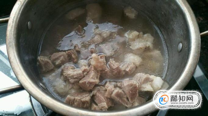 先把羊肉放在干净的冷水中浸泡两个小时,中间换一次水,然后再把羊肉切成块状。