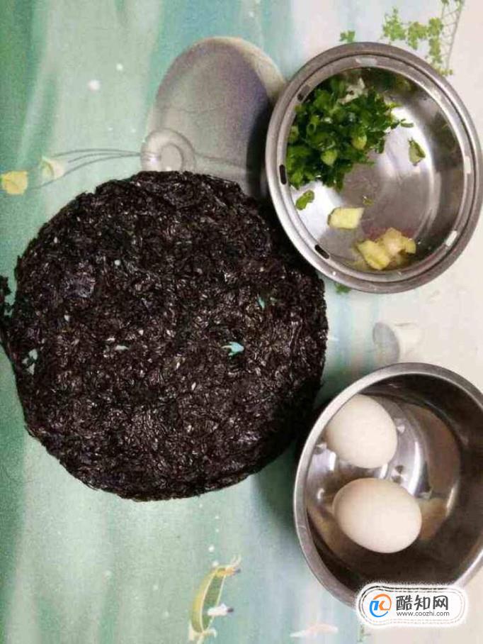 首先我们准备食材,紫菜适量,鸡蛋两个打散备用,葱洗净切碎备用,虾米适量备用