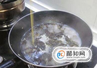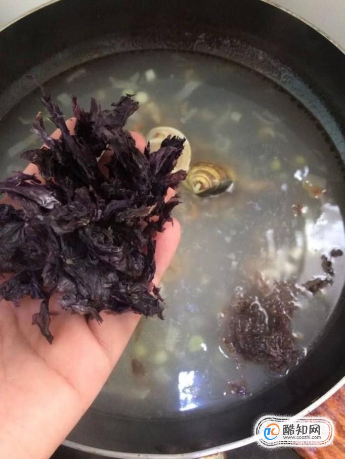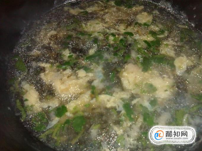 水开后下入紫菜,因为紫菜比较好熟,然后直接也下入搅好的鸡蛋。