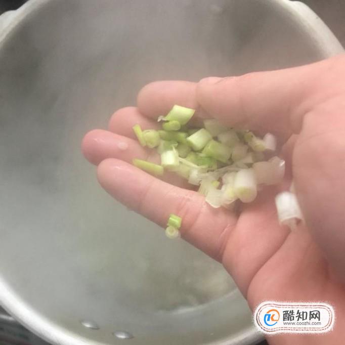 然后把香葱切成葱花,撒入锅中小煮片刻就可以出锅了。