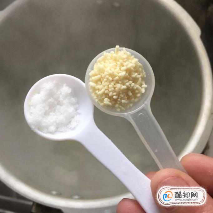 然后晚过中加入一勺的盐巴和一勺的味精并用勺子搅拌一下。这样做是为了让盐巴和味精更好的融入到汤汁中。