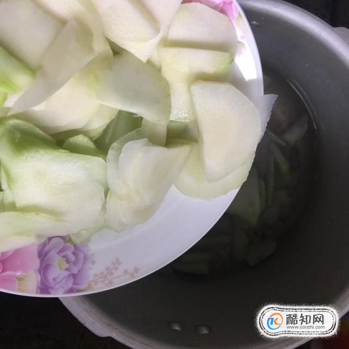 然后往高压锅中放入适量的清水,倒入菜头片,开大火压十分钟。