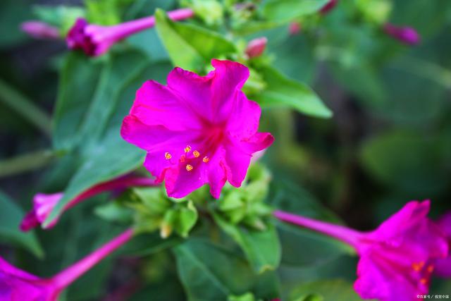 紫茉莉 紫茉莉是一种多年生的地被植物,它的花朵呈现出深紫色、淡紫色等多种颜色。紫茉莉的花期较长,从春天一直到夏天都有开花的可能,因此也被广泛用于园林绿化中。