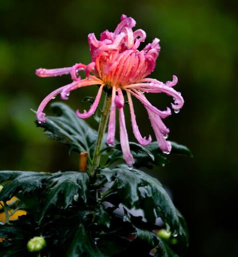菊花的生长环境: 菊花的适应性很强,喜凉,较耐寒,生长适温18-21℃,最高32℃,最低10℃,地下根茎耐低温极限一般为一10℃。 它的花期最低夜温17℃,开花期(中、后)可降至15-13℃。喜充足阳光,但也稍耐阴。