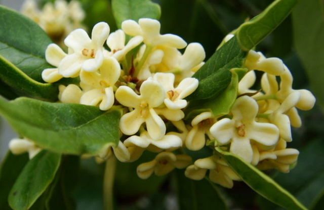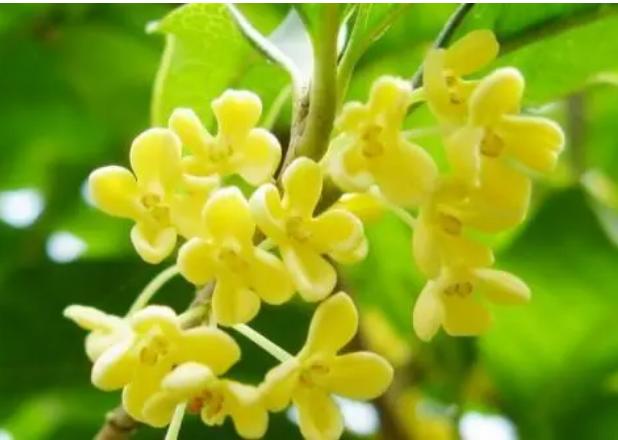 秋天有桂花。 桂花的花期在每年秋季的9到10月份,但是不同的桂花品种的具体开花时间不一样,例如四季桂花就是一年四季都会开放花朵。 桂花的介绍: 桂花是属于木樨科木樨属的常绿乔木,它的树皮呈现灰褐色,其花朵多为金黄色。桂花是中国传统十大名花之一,是观赏与实用兼备的优良园林树种。