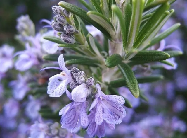 迷迭香的介绍: 迷迭香,属唇形科迷迭香属多年生常绿亚灌木。幼枝呈四棱形,密被白色星状细绒毛;老枝呈网柱形,褐色;迷迭香叶片背部呈深绿色、平滑。 迷迭香是一种名贵的天然香料植物,在生长季节会散发一种清香气味。其花和嫩枝提取的芳香油,可用于调配空气清洁剂、香水、香皂等化妆品原料。