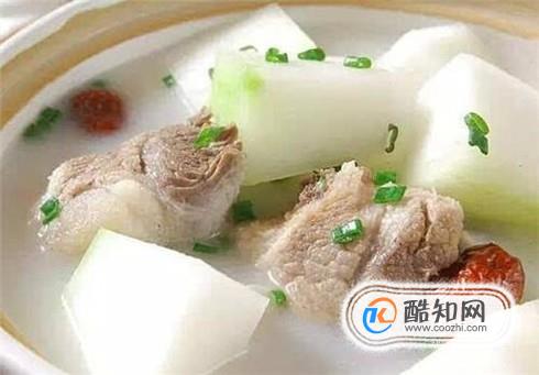 冬瓜排骨汤。冬瓜和排骨一起炖汤,加入几颗红枣和枸杞,炖出来的汤很清甜,秋季多吃一些冬瓜,是很补充水分的。