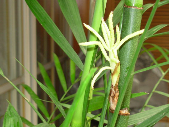 | 竹子一生只开一次花。 竹子从开花、结种子到种子成熟的过程,会消耗掉全部的养分。竹子开花后,竹叶变为枯黄色开始脱落,竹秆褪色变黄,竹鞭变黑甚至腐烂,当年或相继几年死亡。 因为开花结实要消耗掉大量的有机养料,而这些养料来自根、茎、叶,所以开花结实后,营养器官中贮存的养料大部分被消耗,不能再生活下去,就逐渐枯死了。