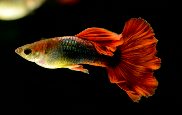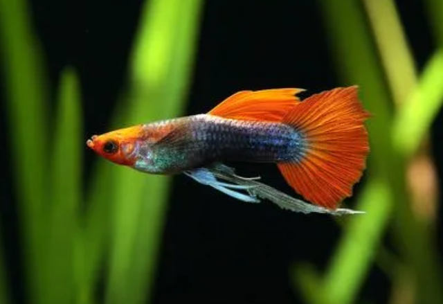 孔雀鱼的介绍: 孔雀花鳉俗名孔雀鱼,也称为凤尾鱼、彩虹花鳉、虹鳉、古比鱼等,是花鳉科花鳉属的一种热带鱼,雌雄鱼的体型和色彩差别较大,成年雄鱼身体瘦小。 孔雀花鳉为杂食性小型鱼种,它们对环境的适应能力十分强韧,分布于部分热带地区的河川下游及湖沼、沟渠中,主要栖息于淡水流域及湖沼。