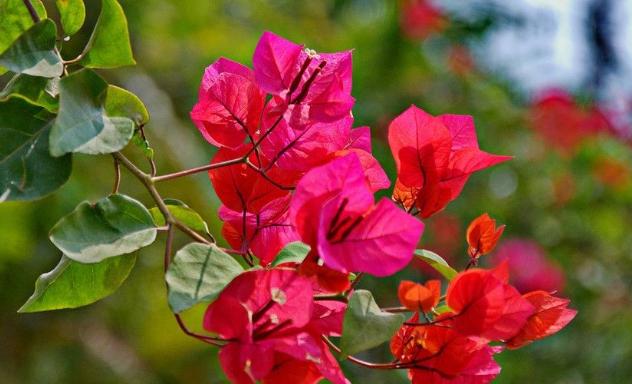 三角梅最低能耐5℃的低温。 因为三角梅耐寒性差,最低耐寒温度为5℃,当气温低于此温度时,就会出现冻伤的情况,进而导致落叶、枯萎,因此在冬季养殖时,要将温度维持在5℃以上,最佳生长为15-20°C。