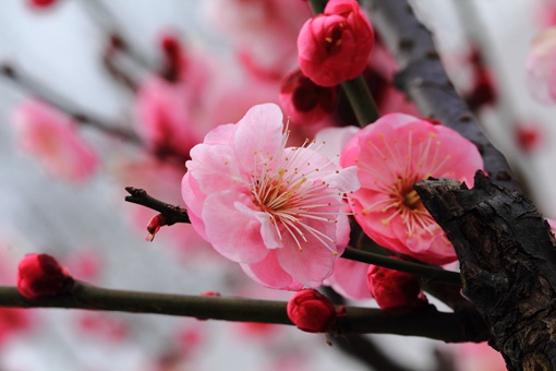 第一首诗一开端就突写作者对梅花的喜爱与赞颂之情:“众芳摇落独暄妍,占尽风情向小园”,它是在百花凋零的严冬迎着寒风昂然盛开,那明丽动人的景色把小园的风光占尽了。一个“独”字、一个“尽”字,充分表现了梅花独特的生活环境、不同凡响的性格和那引人入胜的风韵。作者虽是咏梅,实则是他“弗趋荣利”、“趣向博远”思想性格的真实写照。苏轼曾在《书林逋诗后》说;“先生可是绝伦人,神清骨冷无尘俗。”其诗正是作者人格的化身。 如果说首联是作者对梅花所发的感喟,那么颔联则是进入到对梅花具体形象的描绘:“疏影横斜水清浅,暗香浮动月黄昏。”这一联简直把梅花的气质风姿写尽绝了,它神清骨秀,高洁端庄,幽独超逸。尤其是“疏影”、“暗香”二词用得极好,它既写出了梅花不同于牡丹、芍药的独特形成;又写出了它异于桃李浓郁的独有芬芳。极真实地表现诗人在朦胧月色下对梅花清幽香气的感受,更何况是在黄昏月下的清澈水边漫步,那静谧的意境,疏淡的梅影,缕缕的清香,使之陶醉。这两句咏梅诗,在艺术上可说臻于极至,故一直为后人所称颂。陈与义说:“自读西湖处士诗,年年临水看幽姿。晴窗画出横斜影,绝胜前村夜雪时。”(《和张矩臣水墨梅》)他认为林逋的咏梅诗已压倒了唐齐己《早梅》诗中的名句“前村深雪里,昨夜一枝开”。辛弃疾在《念奴娇》中奉劝骚人墨客不要草草赋梅:“未须草草赋梅花,多少骚人词客。总被西湖林处士,不肯分留风月。”可见林逋的咏梅诗对后世文人影响之大。 林逋这两句诗也并非是臆想出来的,他除了有生活实感外,还借鉴了前人的诗句。五代南唐江为有残句:“竹影横斜水清浅,桂香浮动月黄昏。”这两句既写竹,又写桂。不但未写出竹影的特点,且未道出桂花的清香。因无题,又没有完整的诗篇,未能构成了一个统一和谐的主题、意境,感触不到主人公的激情,故缺乏感人力量。而林逋只改了两字,将“竹”改成“疏”,将“桂”改成“暗”,这“点睛”之笔,使梅花形神活现,可见林逋点化诗句的才华。 作者写尽梅花姿质后,掉转笔头,从客观上着意泻染:“霜禽欲下先偷眼,粉蝶如知合断魂。”霜禽,一作冬鸟,一作白鹤,白鸟。依据林逋“梅妻鹤子”的情趣,还是当“白鹤”解释为好。前句极写白鹤爱梅之甚,它还未来得及飞下来赏梅,就迫不及待地先偷看梅花几眼。“先偷眼”三字写得何等传神!作者对现实事物的观察又是何等细致!后句则变换手法,用设想之词,来写假托之物,意味深邃。而“合断魂”一词更是下得凄苦凝重,因爱梅而至销魂,这就把蝴蝶对梅的喜爱夸张到了顶端。通过颈联的拟人化手法,从而更进一步衬托出作者对梅花的喜爱之情和幽居之乐。联中那不为人经意的“霜”、“粉”二字,也实是经诗人精心择取,用来表现他高洁情操和淡远的趣味。 以上三联,作者是把梅当作主体,诗人的感情是通过议论、叙述、拟人等手法隐曲地体现在咏梅之中。至尾联主体的梅花转化为客体,成为被欣赏的对象。而作者则从客体变为主体,他的感情由隐至显,从借物抒怀变为直抒胸臆:“幸有微吟可相狎,不须檀板共金尊。”在赏梅中低声吟诗,使幽居生活平添几分雅兴,在恬静的山林里自得其乐,真是别具风情,根本不须音乐、饮宴那些热闹的俗情来凑趣。这就把诗人的理想、情操、趣味全盘托出,使咏物与抒情达到水**融的进步。 第二首诗开头两句是说梅花像是剪碎了的丝织品,上面涂了油酥,正反面有深有浅,多么自然,画是画不出来的。这里用精细轻薄的丝织品绢和油酥制品来比喻悔花的滋润柔美,十分传神。这在宋代诗词作品中一不乏其例,如苏轼《腊梅》诗中就有“天工点酥作梅花”的句子。“向背”、“稀稠”描绘了在白天丽日高照下的梅花风姿。接下去说梅花在整个白天直到日薄西山这段时间里,可以尽情地享受春天的温暖,但到夜幕降临的时候,在严霜的侵袭下,梅花可能要受不了吧。梅花本来是以其经霜耐寒的品格受到人们称赞的,“霜深应怯”的顾虑似乎大可不必,但正是这不必要顾虑的顾虑,才能表达出诗人对梅花的无比深情。