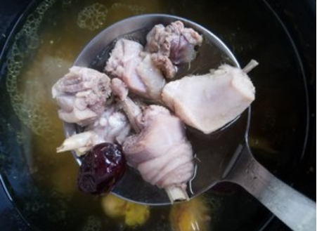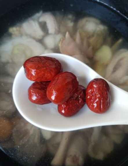 锅中加水放入鸡,红枣,盐,姜片按煲汤键不用管它。