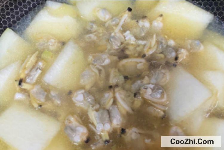 首先应该准备鸡块,蛤蜊,冬瓜以及适量的调料,这一个制作的方法比较简单。 详细内容鸡肉在剁成块之后,然后清洗干净直接放在水中洗去表面的浮沫,直接捞出来沥干水分,放在边上备用。  锅里面加入适量的油,在加热之后放入葱花爆香,然后把冬瓜切皮之后放入到锅中,加入适量的蚝油翻炒一下,此时就能够有效激发出冬瓜的味道。  此时加入适量的水,把鸡肉以及蛤蜊全部放入到其中。但是一般先放入鸡肉,因为肌肉还需要熬煮一段时间,再放入鸡肉之后,烧开后,表面上还会有一些浮沫,此时就需要及时的去除浮沫,这才能够有效避免口感的隐患。  蛤蜊可以在最后的时候放入到其中,因为比较有香味,因为比较咸,所以在熬煮之后并不需要加上太多的盐或者味精,适当性的品尝之后可以结合个人的口感来加上合适的调味品。接下来可以直接出锅,不过如果喜欢的话可以加上一些香菜和香葱。 (www.wS46.com)