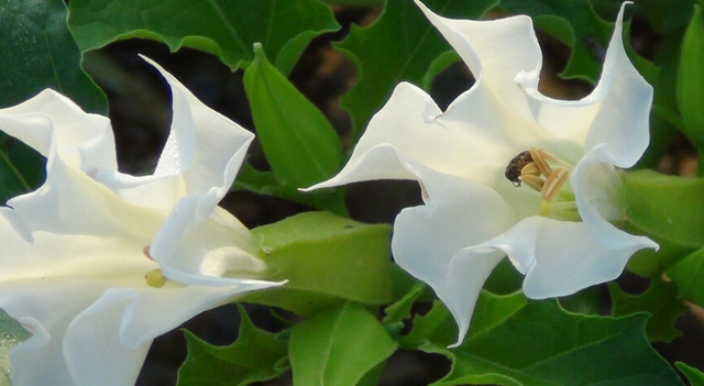 曼陀罗之所以叫作情花,是因为它有毒性,所以在金庸小说中写成情花。此花结果,或酸,或甜,或苦,或无味。花上有刺,刺上有毒,称为情花毒。 曼陀罗叫情花,是因为植株寓意着多情的感情世界,常用来形容充满遗憾的爱情,除此之外,植株还具有不可预知的黑暗、生命的不归之路的含义。