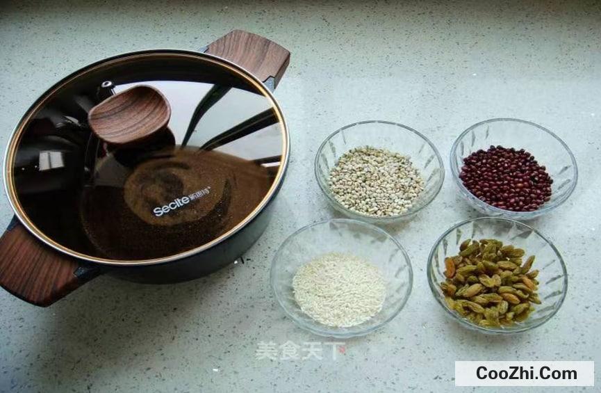 红豆薏米粥,营养丰富,作为早餐是十分不错的一个选择,制作好吃的红豆薏米粥,需要准备原料,红豆,薏米,糯米和葡萄干,做法步骤,第一步要称量原料,将薏米和红豆提前用清水泡上一晚上,让它们更容易被煮熟,第二步在锅里添加适量的水 倒入红豆,盖上盖子大火煮开,煮开后转到小火继续煮,第三步等到红豆煮到绵软时倒入薏米,再倒入糯米,搅拌均匀,继续用小火熬制,最后等到汤汁出现粘稠后加入葡萄干,继续煮两三分钟就可以出锅,好喝又健康的红豆薏米粥就做好了。