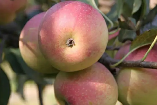 乔纳金简介 树势较强,枝条开张,萌芽率高,成枝力强。有腋花芽结果习性,以中短技结果为主,结果早,丰产性强,果实中大,单果重210克左右。果圆锥形或近圆形,果面底色浅黄,浮色鲜红,果形美观。