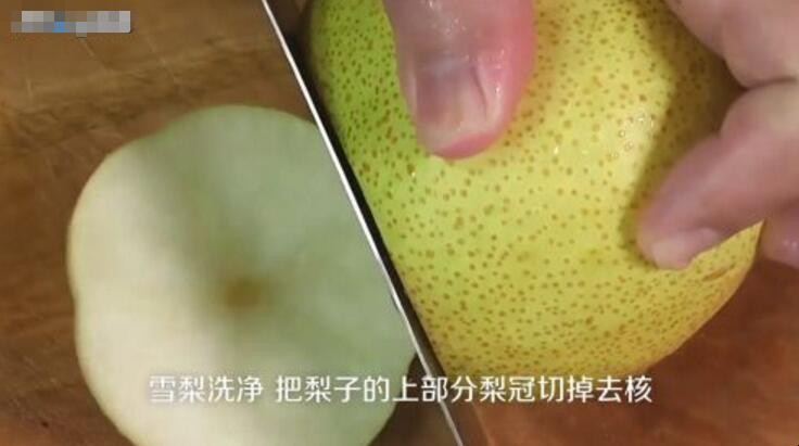 1、雪梨洗净,把梨子的上部分梨冠切掉去核。
